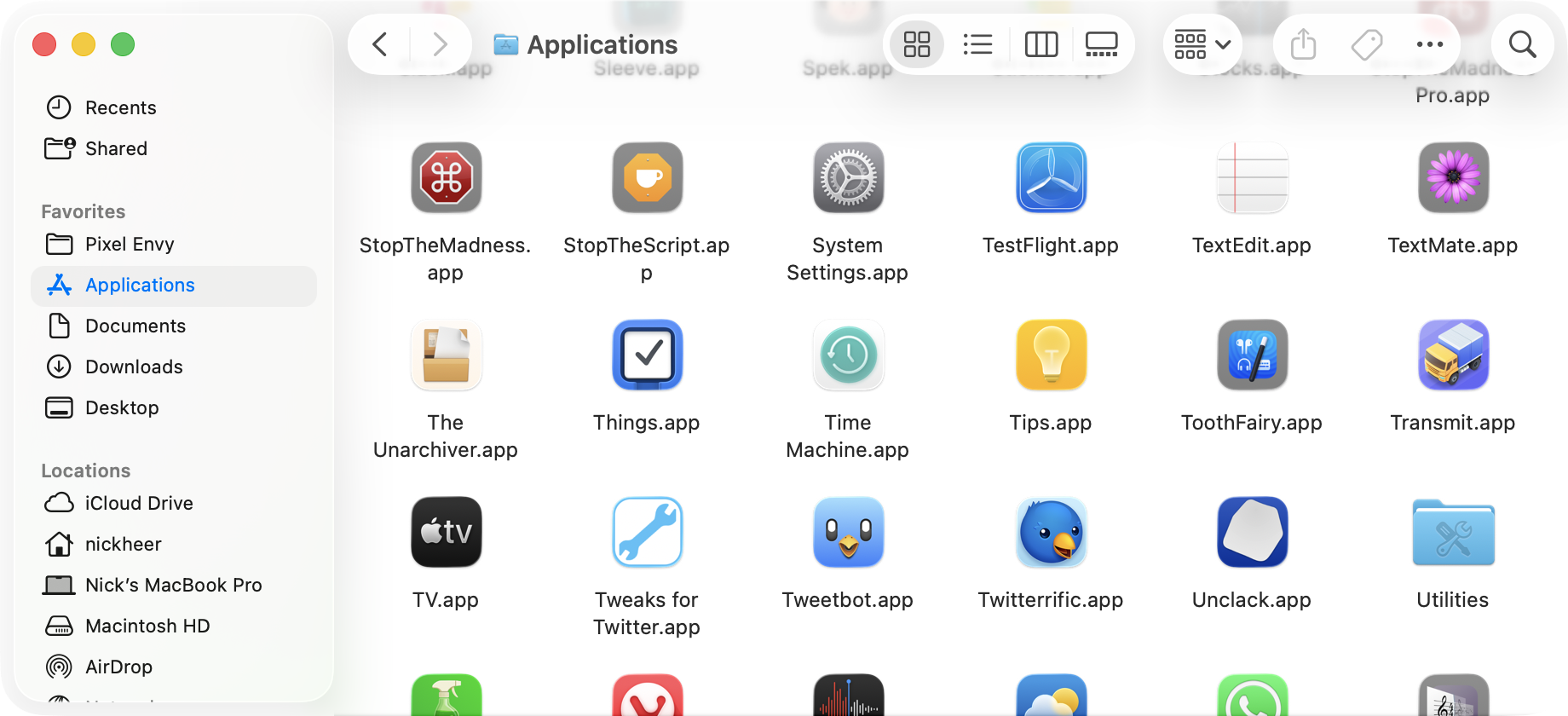 Then there are the issues caused by this dedication to concentricity. Look again at that Finder window screenshot above and pay attention to the buttons in the toolbar. In particular, notice how the icon in the item grouping button — the solitary one between the view switcher, and the group that includes the sharing button — looks like it is touching the rounded edge.