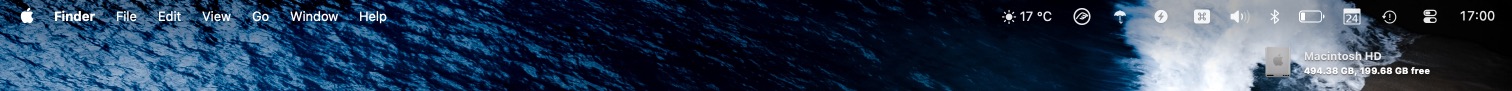 With all the places the Liquid Glass texture has been applied in MacOS, you might believe it would make an appearance in the Menu Bar, too, since that has sported a translucent background since Leopard. But you would be wrong. In fact, in MacOS 26, the Menu Bar often has no background at all. The system decides whether the menu titles and icons should be shown in white or black based on the desktop picture, and then drops them right on top of it. Occasionally, it will show a gradient or shadow, sometimes localized to either side of the menu bar. Often, as with the other uses of translucency, legibility has been considered and I have not had difficulty reading menu items — but, also like the other translucent elements, this would never be a problem if the menu bar had a solid background.
