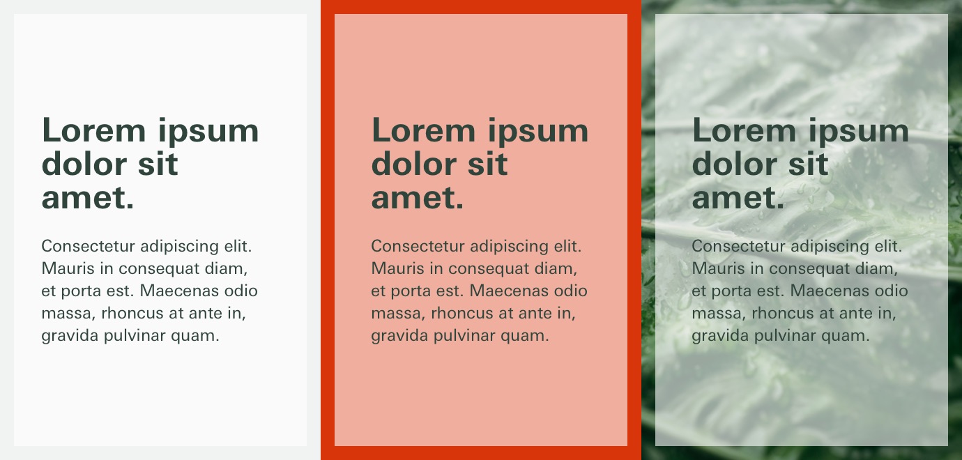An illustration of decreasing contrast as background opacity and colours change. The rectangles are white at 60% opacity.
