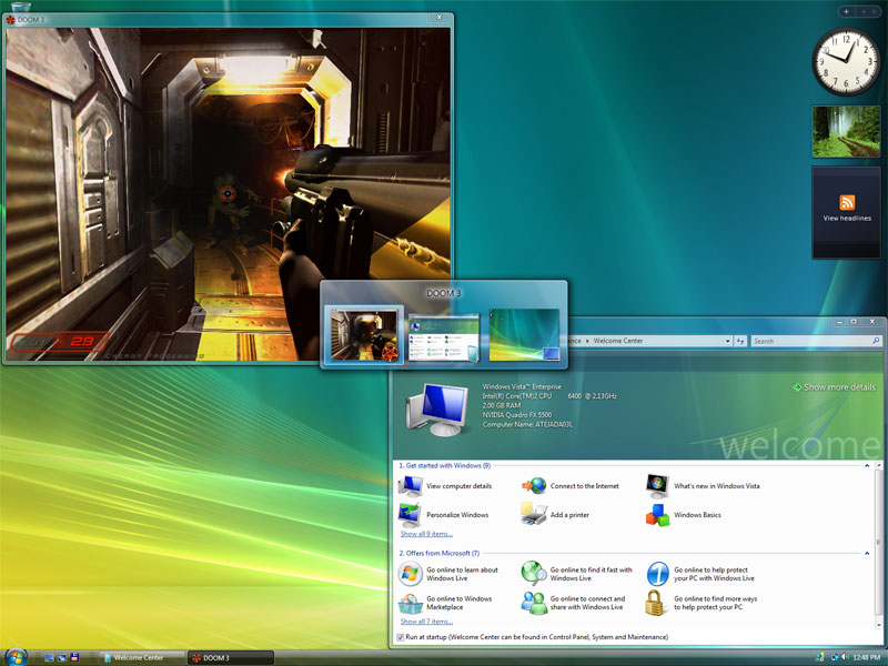 Windows Vista. Notice the white glow behind the text in application title bars, and the blurred background elements. (Image from the OpenGL Pipeline Newsletter.)
